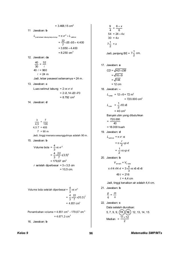 Kunci Dan Perangkat Matematika Smp Kelas 9
