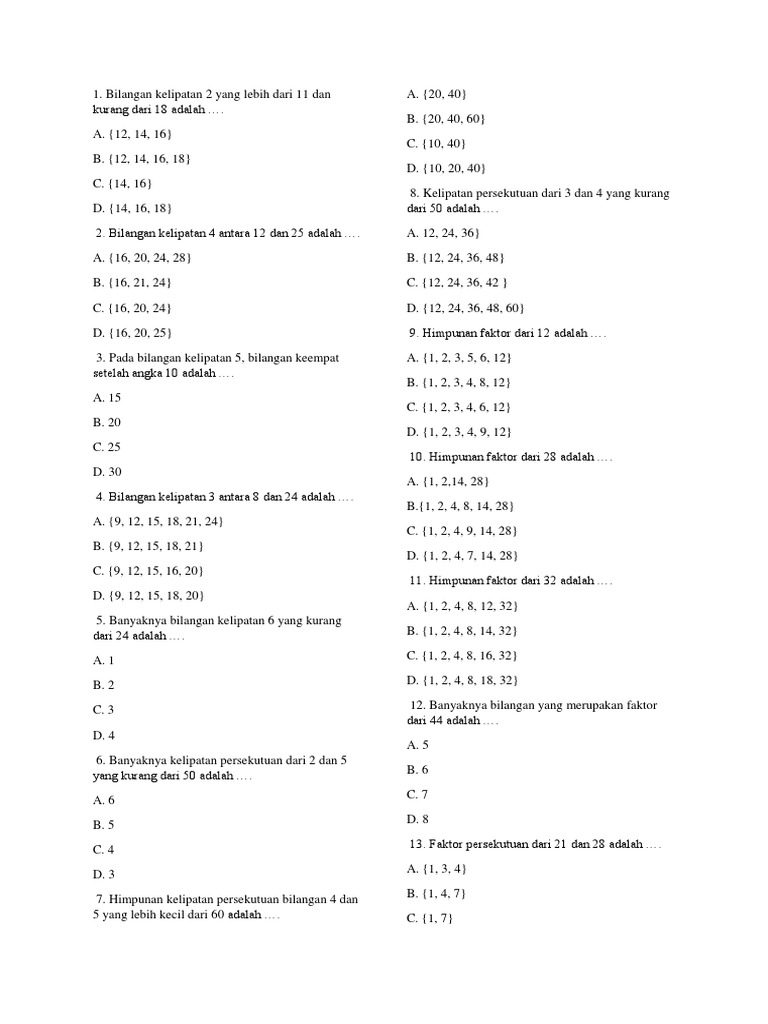 Faktor Dan Kelipatan Bilangan Matematika Lengkap