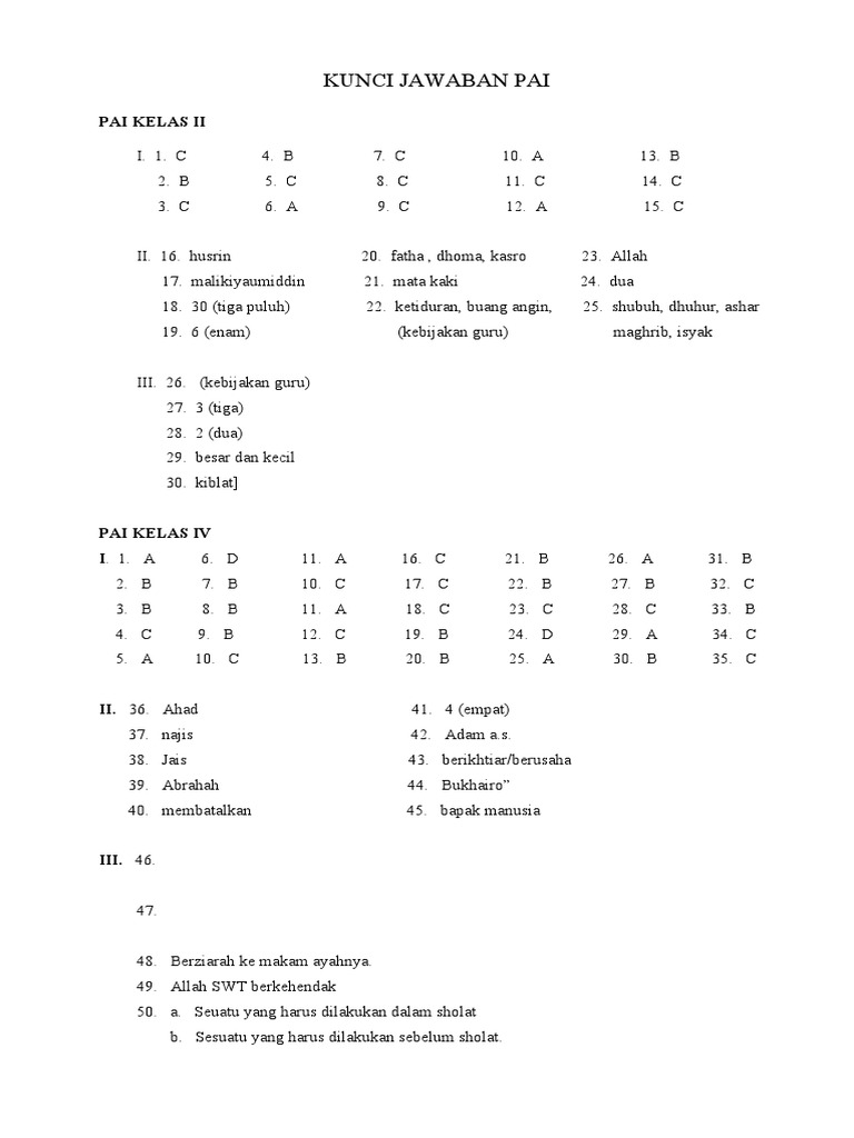 Kunci Jawaban Pendidikan Agama Islam Pai Kelas 7 Wali Kelas Sd
