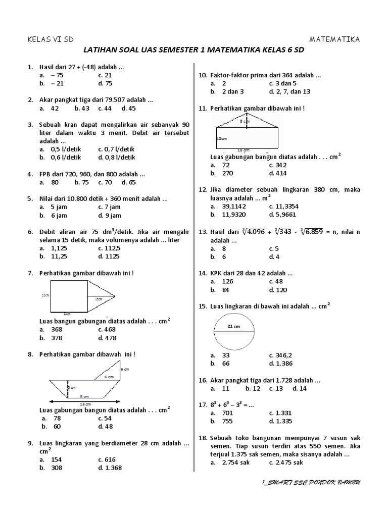 Uas Semester 1 Matematika Kelas 6 Sd