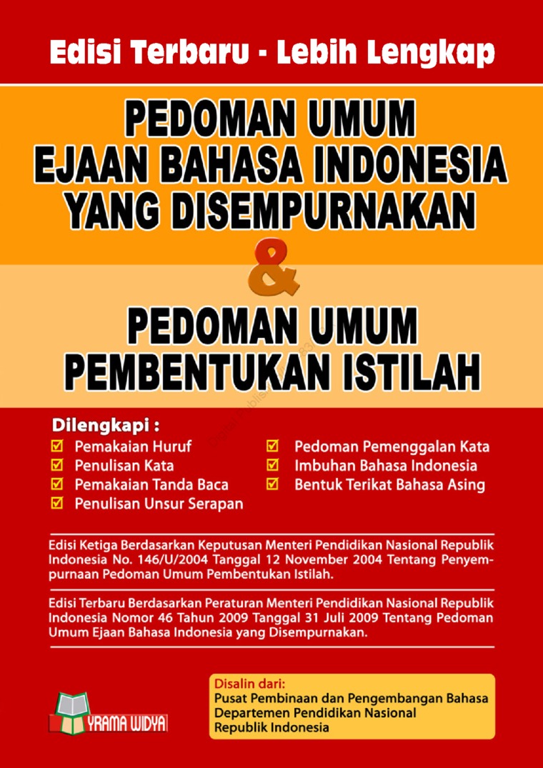 57 tahun 1972 dengan nama Ejaan yang Disempurnakan. Buku Pedoman Umum Ejaan Bahasa Indonesia Yang Disempurnakan Pedoman Umum Pembentukan Istilah Penerbit. Pada 16 Agustus 1972 tepat hari ini 48 tahun lalu pemerintah.