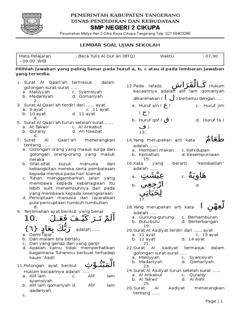 Contoh Soal Dan Jawaban Btq Kunci Soal