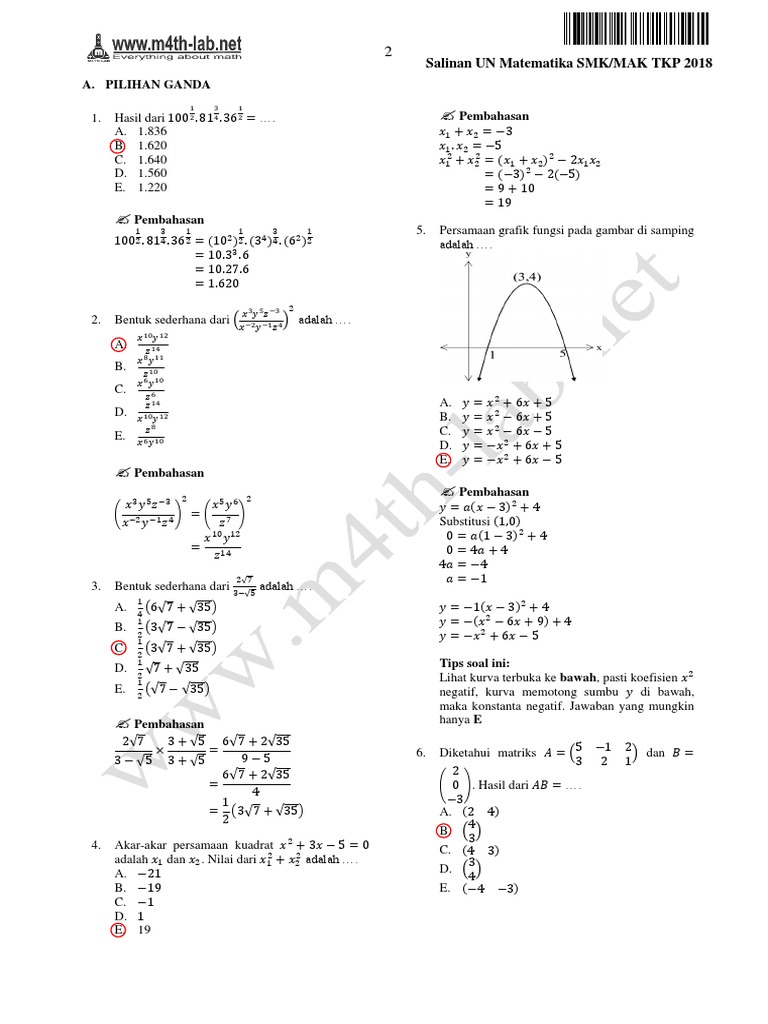 Latihan Soal Persiapan Tkm Matematika Smk Kelompok Teknologi Januari